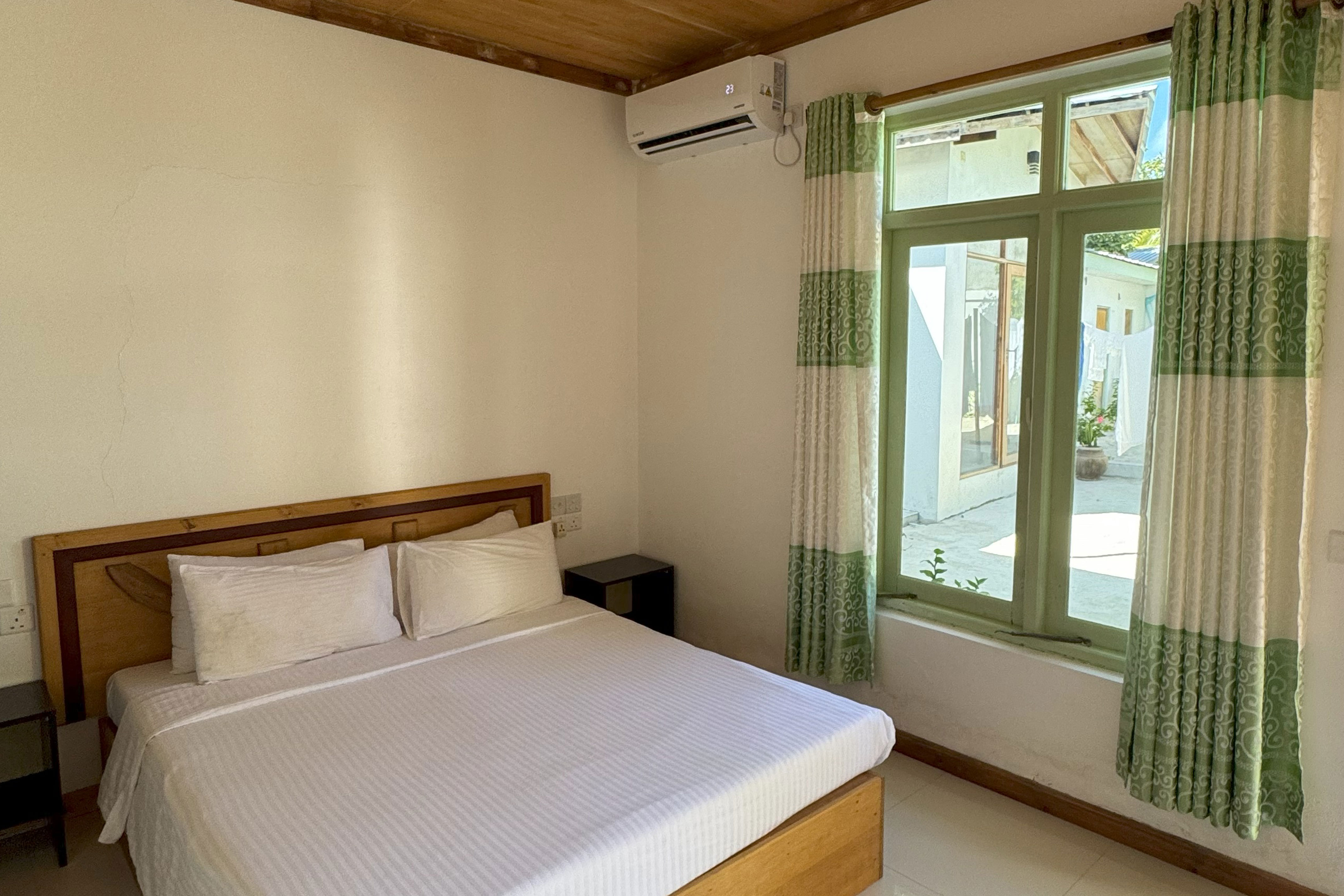 Prenota oraCamera tripla, 22 mq. La camera dispone di ampio letto matrimoniale con minibar, aria condizionata, ventilatore a pala, wi-fi, frigo bar, cassaforte e teli mare. Ampio bagno con doccia.